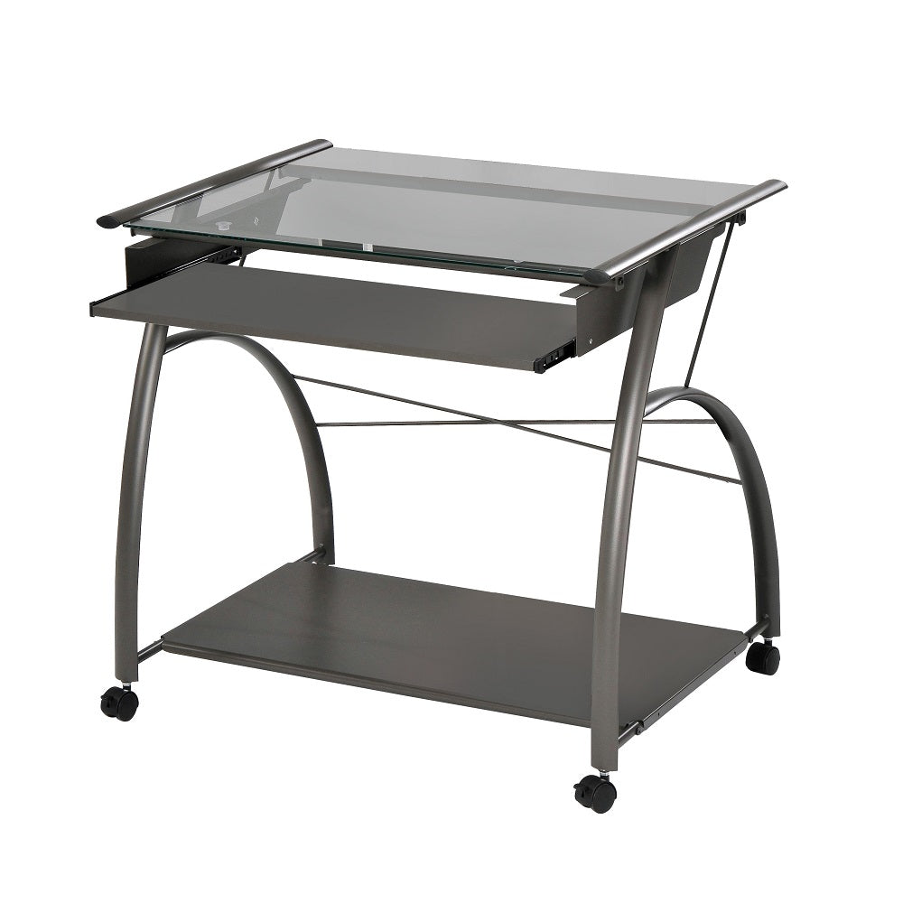 • Storage: Pull-Out Keyboard (Size: 27" x 11"), Open Compartment (Metal Shelf, Fixed)