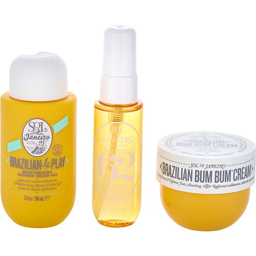 Bum Bum Jet Set: Brazilian Bum Bum Cream 1.7oz + Brazilian 4 Play Moisturizing Shower Cream-Gel 3oz & Brazilian Crush Cheirosa 62 Hair & Body Mist 1oz